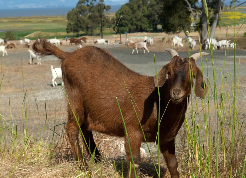 Why goats, you might ask? The goats have natural adaptations that make them one of the best animals for the job. Not only are they one of the longest domesticated animals, but you’ve probably seen pictures of goats walking on impossibly steep walls, seemingly defying the laws of gravity. With mobility a human or machine would have trouble keeping up with, they are able to navigate through hilly California terrain with ease!