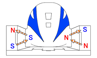 We know that "like" poles of a magnet repel each other and "unlike" poles attract - a concept you would have learned in magnetism. By lining the tracks and the bottom of the train with strong magnets that alternately repel and attract each other, the train can be propelled forward while staying on the tracks.